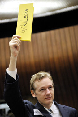 As Assange navigates from military and diplomatic exposés to financial ones this year, his Wall Street targets won't be able to shield their incompetence and misconduct with lip music about how he has damaged national security and violated the Espionage Act of 1917 and deserves capital punishment. But I'm sure they'll invoke trade secrets, copyright, privacy, or whatever other legal window dressing they find convenient. Rather than defending their behavior, they'll imitate Clinton and assail Assange's methods and practices.